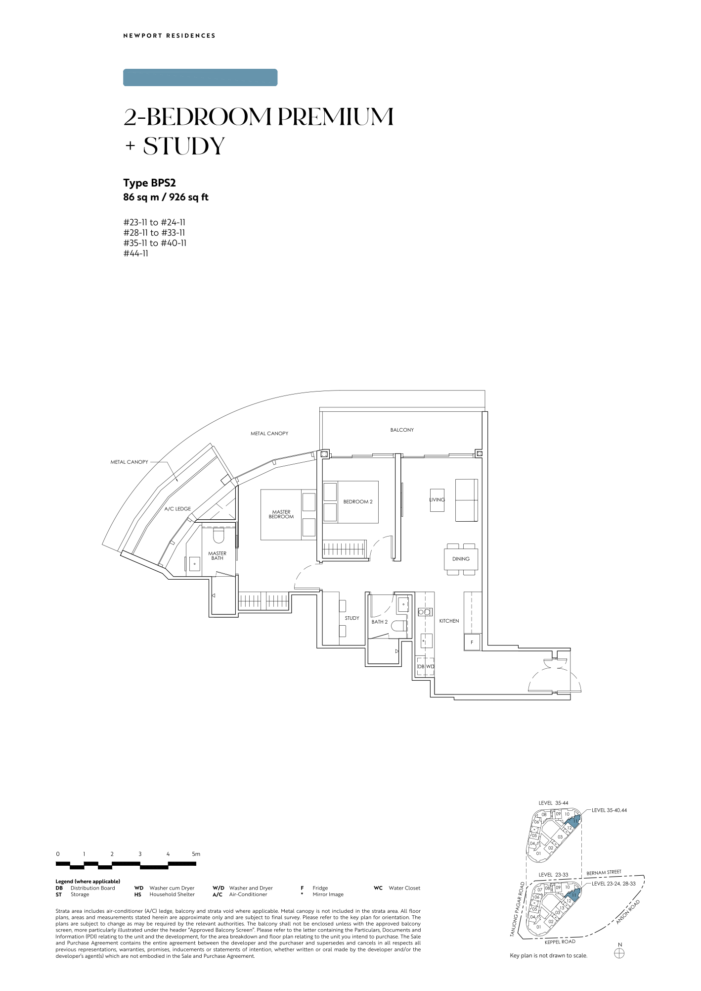 | 2 Bed + Study | 33 | 818 - 926 | 13.41% | BPS1 - BPS2 | $740 |