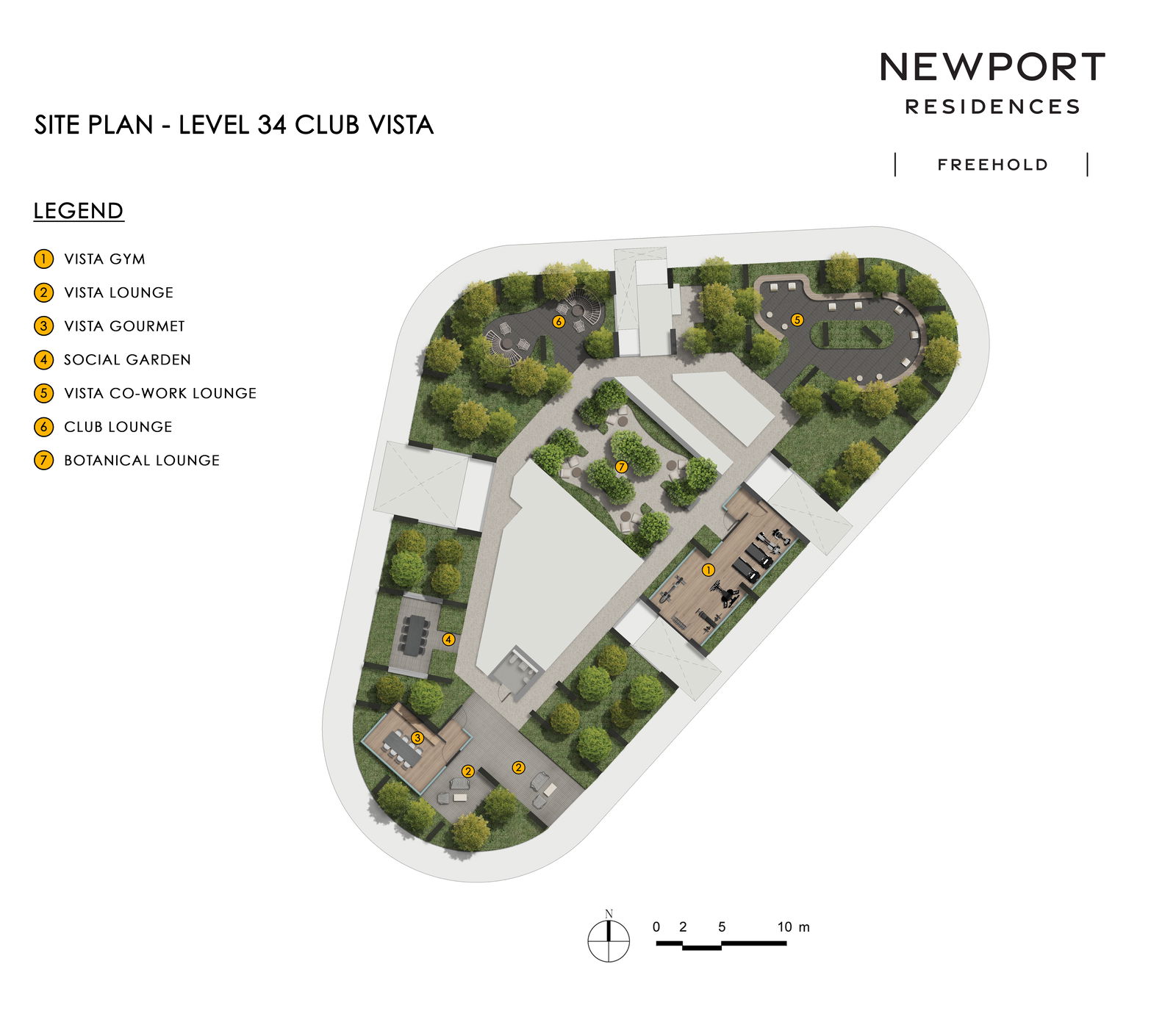 Swimming Pool, Pool Deck, Landscaped Terraces, Residential Services Reception, Sky Club, Sky Lounge, Sky Pavilion, Kids’ Pool, Outdoor Shower, Sky Spa Pool, Sky Pool, Water Feature, Indoor Jet Pool, Steam Room, Sky Gourmet with BBQ Grill, Vista Gym, Vista Lounge, Vista Gourmet, Social Garden, Vista Co-Work Lounge, Club Lounge, Botanical Lounge