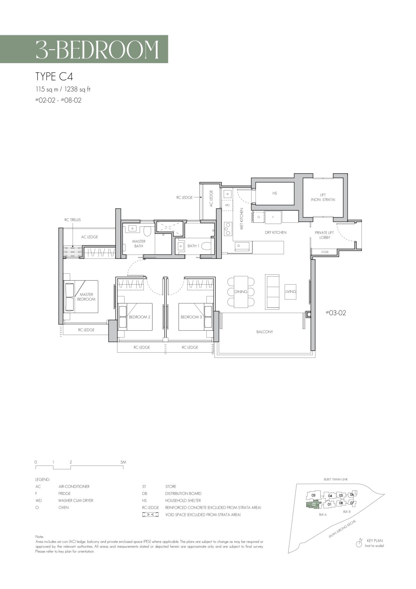 | 3 Bedroom + Balcony (Private Lift) | 7 | 1023 - 1238 | 4.40% | C4 | $490 |