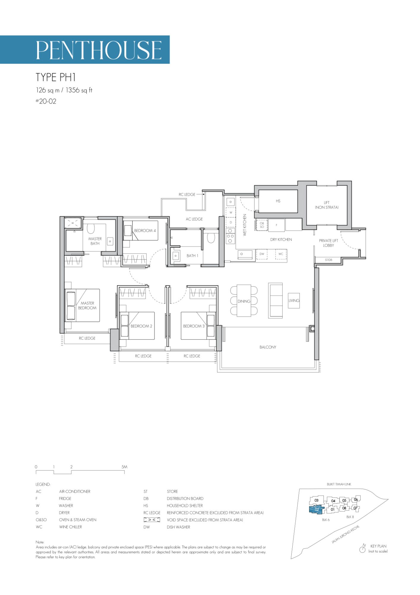 | 4 Bedroom + Balcony (Private Lift) | 11 | 1356 | 7.00% | D1 | $490 |