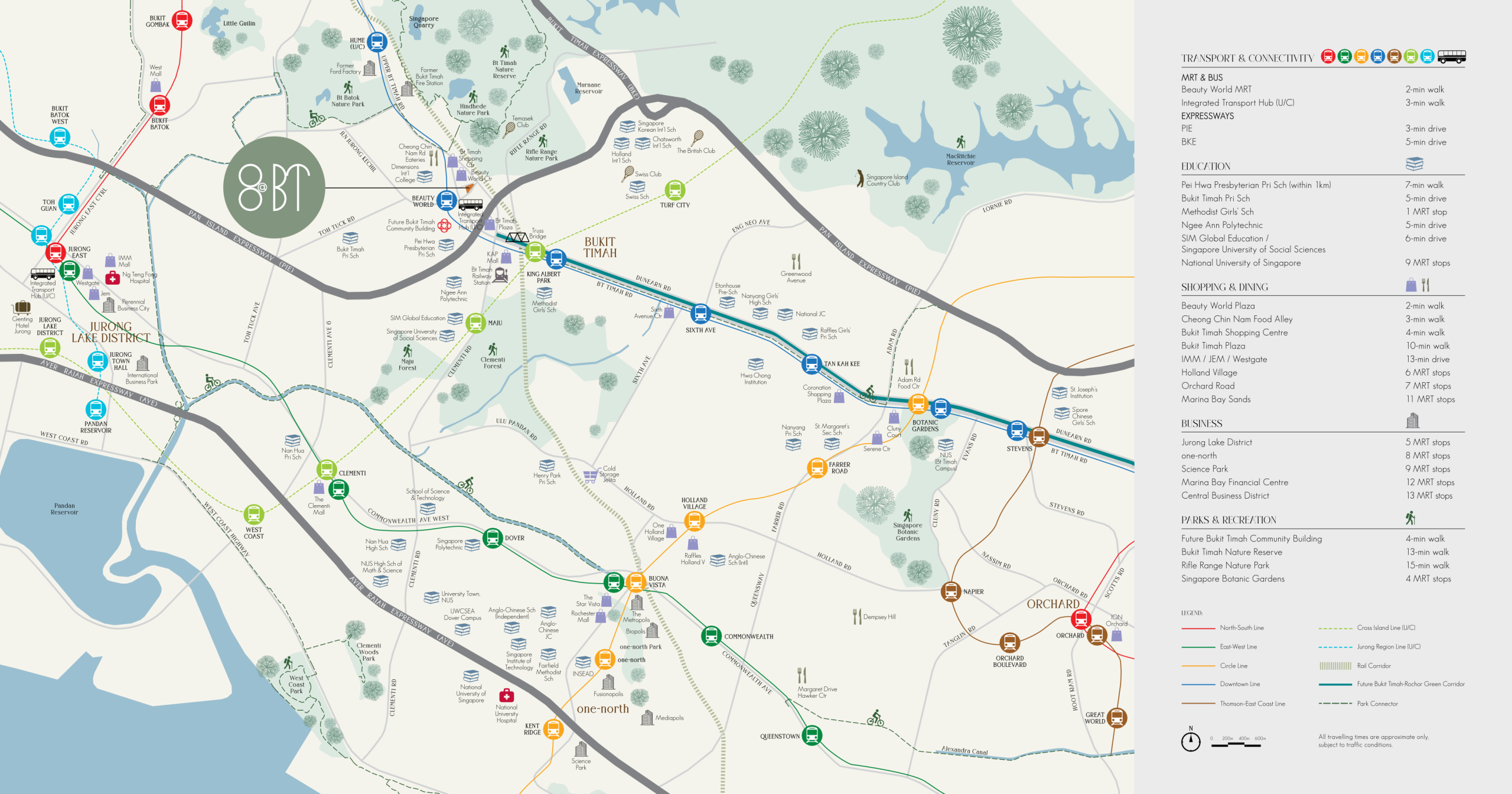 Situated directly next to Beauty World MRT (Downtown Line), 8@BT offers exceptional public transport convenience. Residents can connect to multiple MRT lines within 10 stops, providing efficient access to the CBD, Orchard, Marina Bay, and key employment nodes. For drivers, Bukit Timah Road and the PIE are easily accessible, enabling smooth islandwide travel while maintaining the tranquillity of a prime Bukit Timah address.