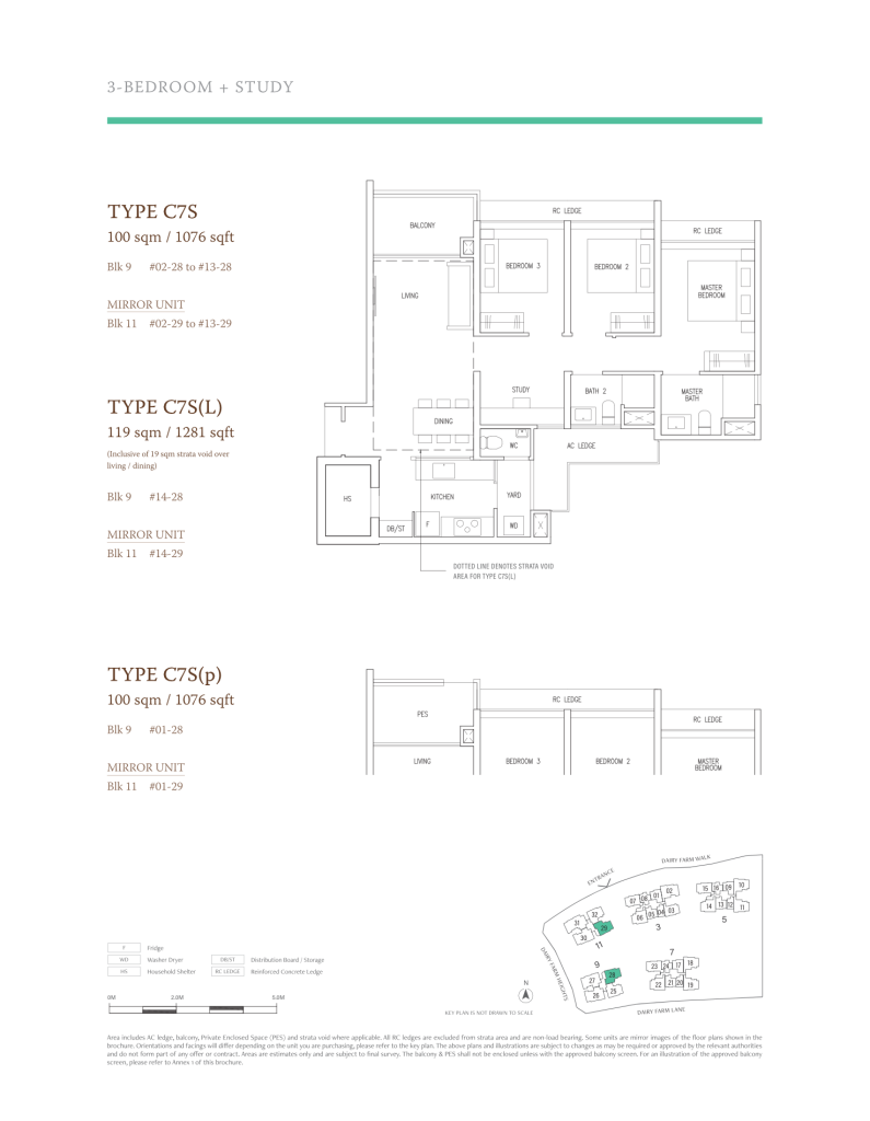 | 3 Bedroom + Study | 28 | 1076 | 7.25% | C7 | $434 |