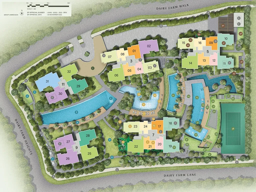 The Botany at Dairy Farm’s Architects are: M.A.N Artchitects LLP (Artchitect), Ecoplan Asia Pte Ltd (Landscape Architect) The Botany at Dairy Farm’s Builder is Sim Lian Group