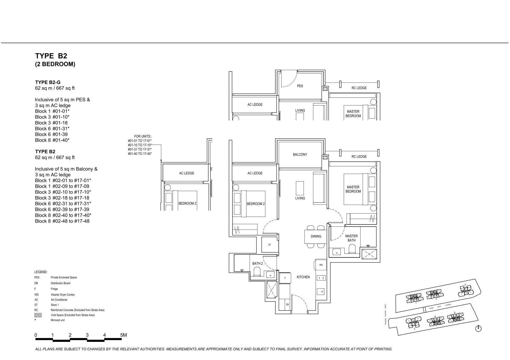 | 2 Bedroom | 170 | 646 - 667 | 20.83% | B1, B2 | $360 |