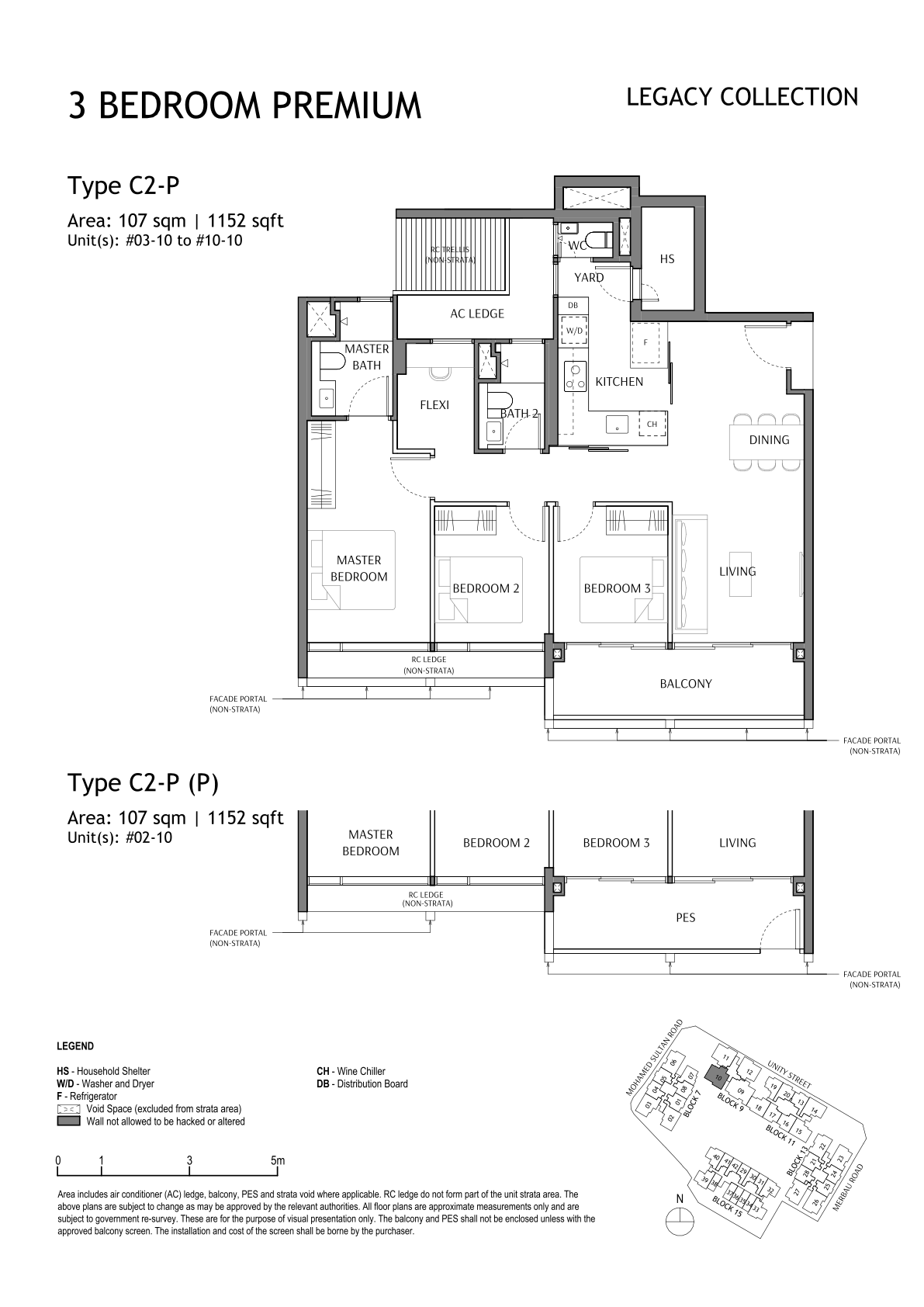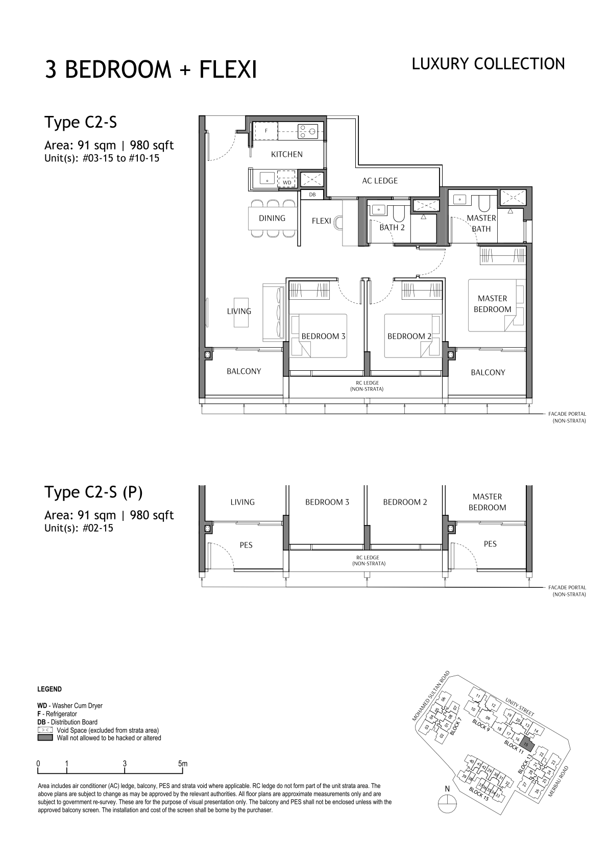 | 3 Bedroom + Flexi | 45 | 926 - 1044 | 12.93% | C1S - C5S | $467 |