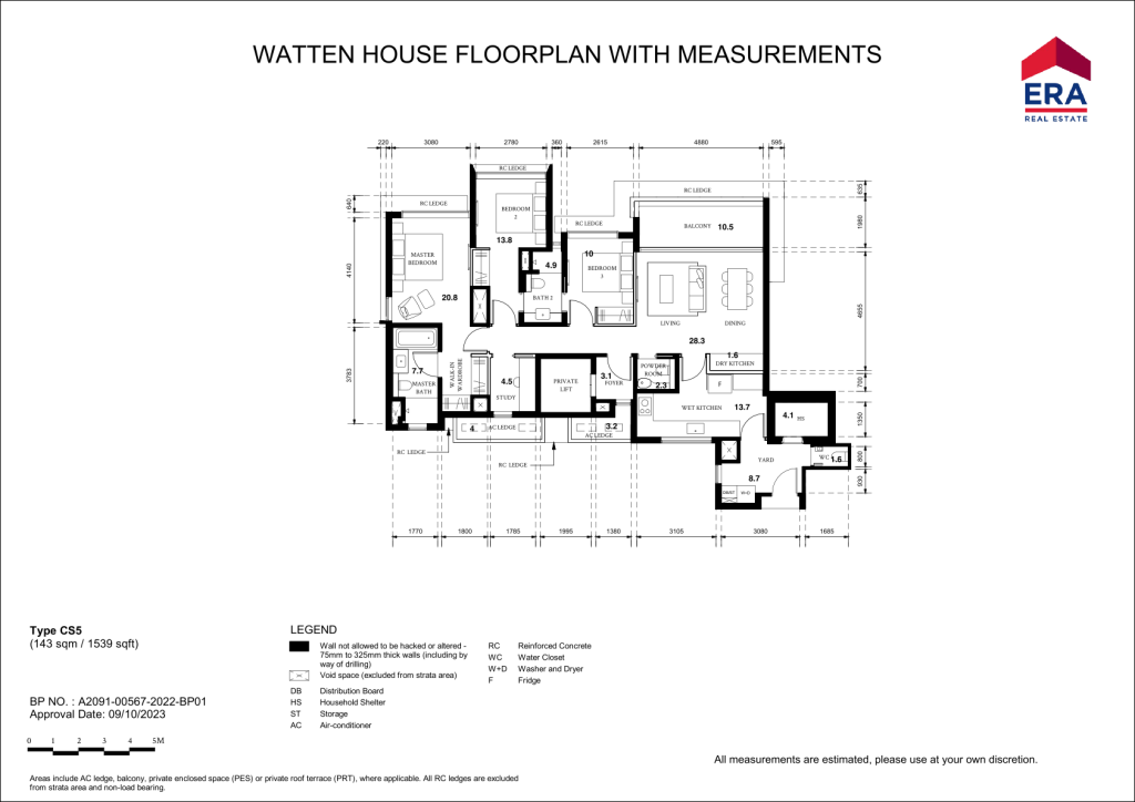 There are 13 different unit Types in Watten House. 3 Bedrooms (C1 990sqft & C2 1,163sqft), 3 Bedrom + Study (CS1 to CS6 1,539sqft), 4 Bedrooms (D1 & D2 1,851 sqft), 5 Bedrooms (E1 2368 sqft), 3 Penthouses ranging from 3,412sqft to 4,080sqft)
