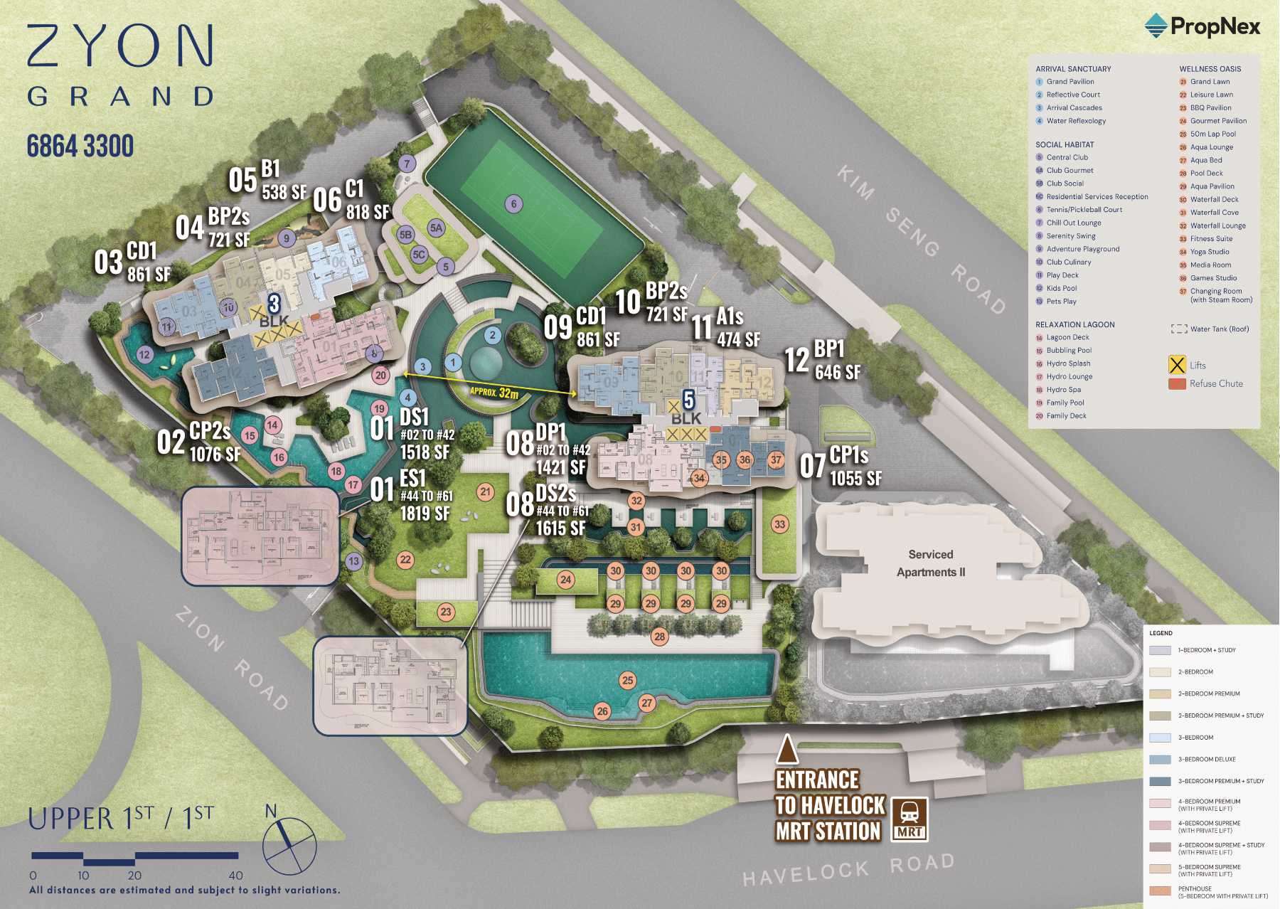 Zyon Grand is an Integrated development that cosists of 2 Residential Towers, 1 Service Apartment Tower, Level 1 Commercial Shops, and Basement leads to Havelock MRT. 706 Residential units ranging from 1 Bedroom + Study to 5 Bedroom Penthouses