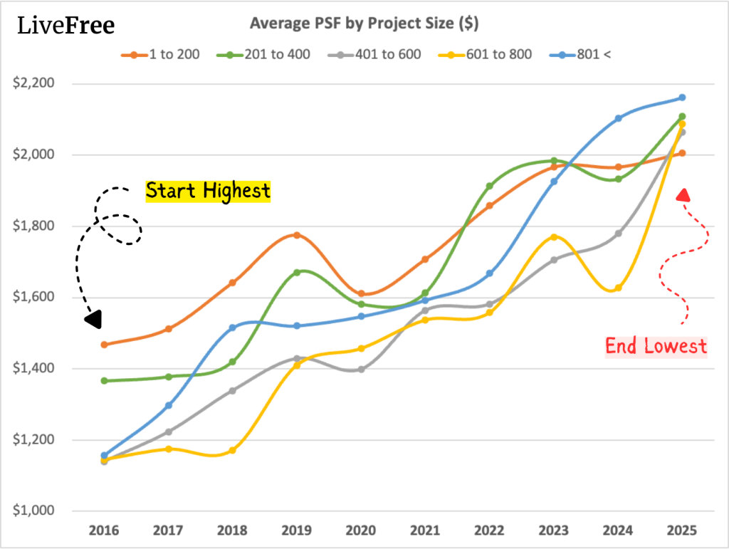 Historically, smaller developments once commanded a price premium, often associated with luxury Boutique Condos in prime or central locations.